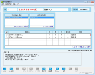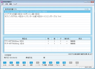 [F10 発行]:服用説明書を発行する。