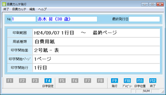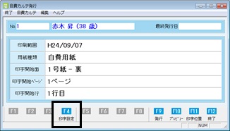 [自費カルテ発行]画面が表示されるので、[F4 印字設定]ボタンをクリックする。