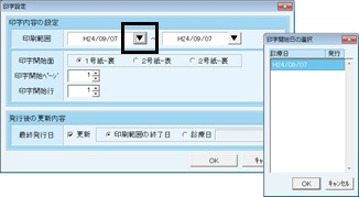 [印字設定]画面が表示されるので、[印刷範囲]のプルダウンボタンをクリックすると、[印刷開始日の選択]画面が表示される。