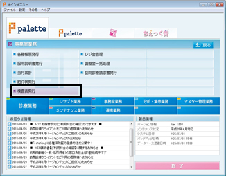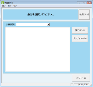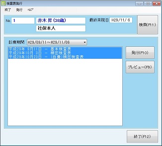 [事務室業務]⇒[検査表発行]をクリック。[検査表発行]画面が表示される。