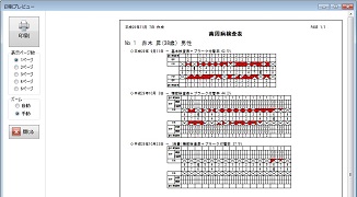[検査表発行]の機能を使って、患者ごとに入力されている歯周組織検査表をまとめて印刷することができます。印刷用紙はA4です。