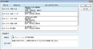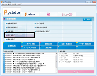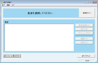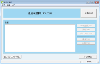 [事務室業務]⇒[紹介状発行]を選択。[紹介状発行]画面が表示される。
