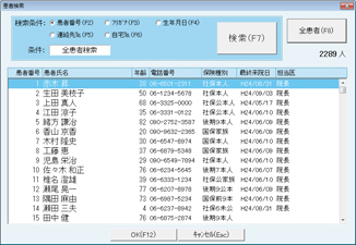 [検索(F11)]ボタンをクリックし、患者検索で対象の患者を呼び出し、その患者を選択し、[OK(F12)]ボタンをクリック。