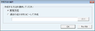 新規に作成する場合、[新規登録(F4)]ボタンをクリック。[作成方法の選択]画面が表示され、[新規作成]か、[過去の紹介状をコピーして作成]かを選択できる。類似の紹介状を作成したことがある場合、[過去の~作成]で、適宜変更して作成すると、新たな紹介状として履歴に登録される。