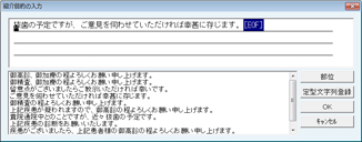 [マスター管理業務]⇒[定型文字列登録]で、[紹介状発行]の各項目で使う文字列をあらかじめ登録しておくことができる。