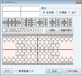 [部位変更]ボタンをクリックすると、[部位入力]画面が表示されるので、治療を行う歯番を設定する。