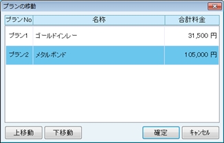 [プランの移動]画面が表示されるので、移動させたいプランを選択して[上移動]又は[下移動]ボタンをクリック。任意の場所にプランを移動させる。