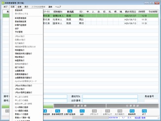 [来院患者管理]画面で、治療費等請求書発行を行う対象患者を選択し、[メニューバー]の[処理]より[治療費等請求書発行]をクリック。