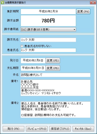 [治療費等請求書発行]画面が表示される。
