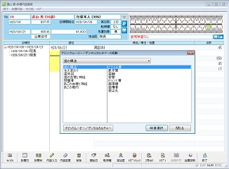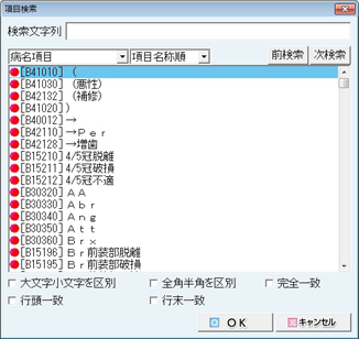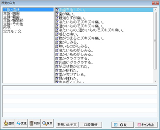 画面右より、入力する所見を適宜クリックして選択し、[選択]ボタンをクリックする。またはダブルクリックする。