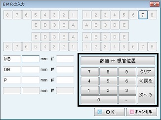 [EMRの入力]画面の数字ボタンをクリックして数値を入力する。