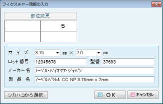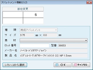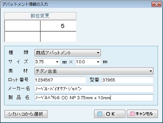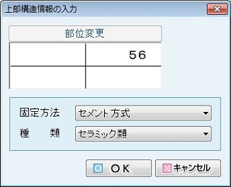 部位ごとの「材料」「充填面」を選択する。入力の終了は[OK]ボタンをクリックする。