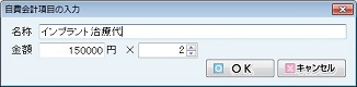 入力の終了は[OK]ボタンをクリックする。[療法・処置]欄に登録される。