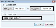 介護サービス開始日、及び、中止日と理由の設定を行う。
