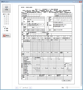 「印刷]ボタンで確認用のレセプトを発行する。