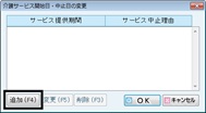 [介護サービス開始日・中止日の変更]画面から[追加(F4)]ボタンをクリックする。