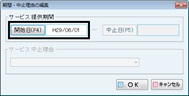 [期間・中止理由の編集]画面が表示されるので、開始日を設定し[OK]ボタンをクリックする。