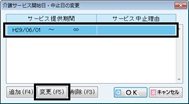 [介護サービス開始日・中止日の変更]画面で中止日を設定したい履歴にカーソルをあわせ[変更(F5)]ボタンをクリックする。