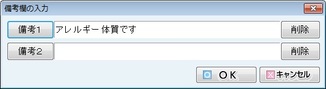備考1、備考2の欄をクリックすることで[備考欄の入力]画面が表示される。備考1、備考2をそれぞれ入力できる。