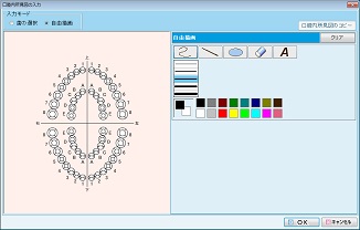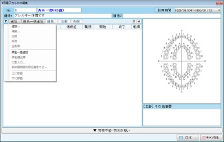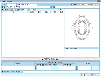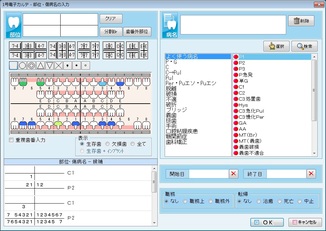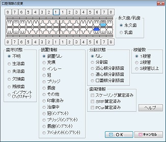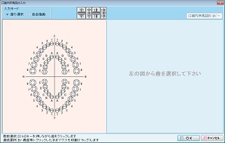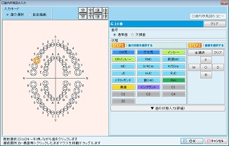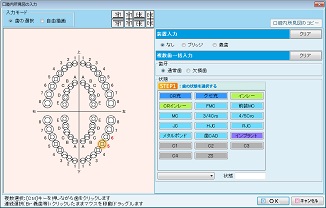 口腔図をクリックすると、[口腔内所見図]の入力画面が表示される。口腔内所見図を編集するためにはまず歯を選択する。