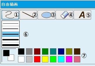 - 消しゴム:一度描画した図を任意の範囲で消す。