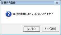 [診療内容登録]画面に表示されている、入力済みの内容を削除する。[部位]単位で、「病名/療法・処置」内容を削除する。