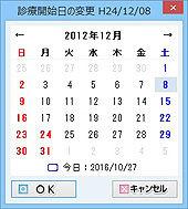 診療開始日を指定/変更する。途中導入や初診時の内容が入力されていない場合など、診療開始日を指定/変更するときに使う。