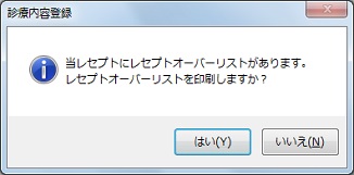 レセプト発行時に印刷しきれない情報があった場合、「当レセプトにオーバーリストがあります。~」と確認メッセージを表示する。