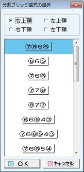 [分割Br]ボタンをクリックすると[分割ブリッジ歯式の選択]画面が表示される。適宜クリックで選択し[OK]ボタンをクリックする。