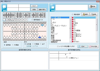 部位の指定は、歯のイラストをクリックする。また以下のボタンを使用して、部位入力をスムーズにおこなえる。