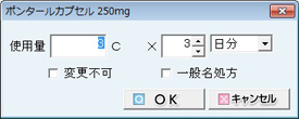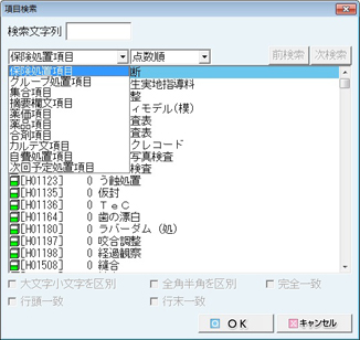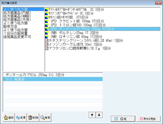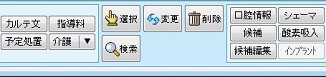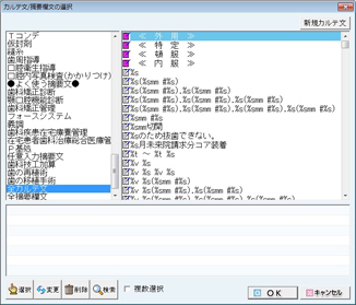 - [カルテ文の置換]:[カルテ文/摘要欄文の選択]画面が表示され、他のカルテ文に置き換えができる。