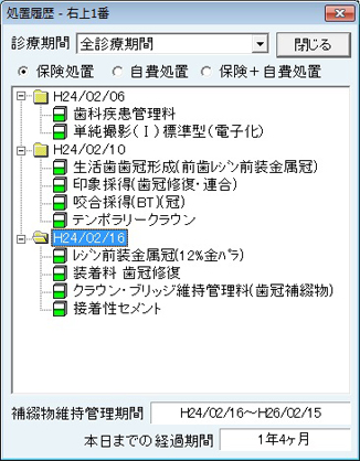 - [同行表示する/しない]:処置の後に続けて表示する/しないを切り替える。