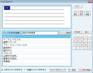 - [カルテ文の編集]:[カルテ文の入力]画面が表示され、カルテ文の編集ができる。