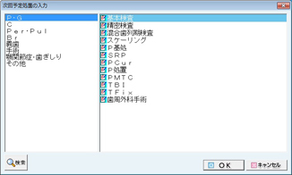 - [欠損歯]:事前に患者の欠損歯情報を登録しておくことで、以降の内容入力がスムーズにおこなえる。特に[7-7]等で総義歯入力する場合、8番の欠損歯登録が必要。