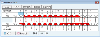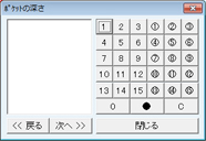 [EPP]欄をダブルクリックすると[ポケットの深さ]画面が表示されるので、数字ボタンをクリックして数値を入力する。次の部位の数値の入力は[次へ>>]ボタンをクリックする。入力の終了は[閉じる]ボタンをクリックする。
