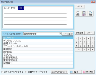 - [カルテ印字する/しない]:[カルテ印字先の指定]画面が表示され、2号カルテ・自費カルテへの印字を設定できる。