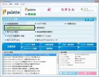レセプト業務のメニュー画面で[レセプトチェック]をクリック。