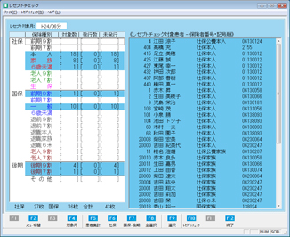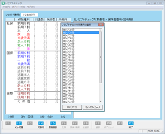 [F6 社保選択]、[F7 国保選択]、[F8 全選択]ボタンをクリックして、該当する区分を一括して選択することができる。