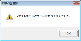 [診療内容登録]画面に戻る。[レセプトチェック]ボタンをクリックしもう一度レセプトチェックできる。終了するなら[終了]ボタンをクリック。