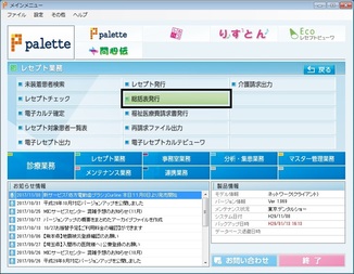 [レセプト業務]のメニュー画面で[総括表]をクリック。