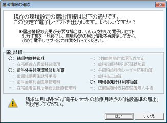 [F5 患者集計]ボタンをクリック。[届出情報の確認]画面が表示される。届出情報を確認し、問題がなければ[はい]ボタンをクリック。