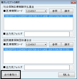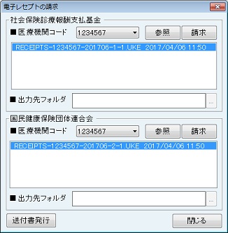 電子レセプト出力作業をするコンピューターに予め、「支払基金」「国保連合」といったフォルダを作成しておき、そのフォルダにそれぞれの請求ファイルを出力すると便利。