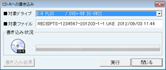 CD-Rに書き込む場合は[実行]ボタンをクリックする。