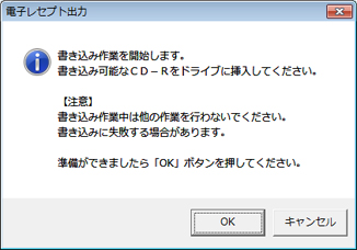 確認画面が表示されるので、空のCD-Rを挿入し[OK]ボタンをクリックする。CD-Rに請求ファイルが書き込まれる。
