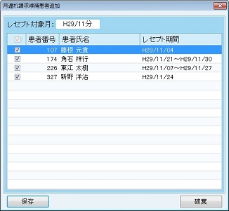 - チェックを外した患者は翌月の以降の月遅れ患者として管理することが可能。
