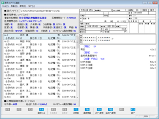 うらメニュー [請求確認]ボタンをクリックすると、[請求ファイル確認]画面が表示される。ここで出力済みの請求ファイル「RECEIPTS.UKE」を指定すると、請求ファイルの内容を確認できる。