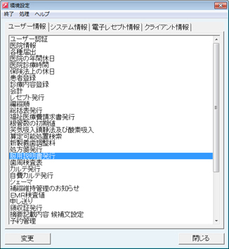 [服用説明書発行]を選択し、[変更]ボタンをクリック。