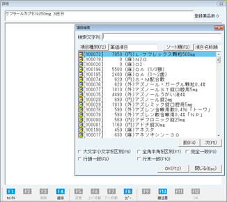 [項目検索]画面より服用方法を登録する薬剤を選択する。