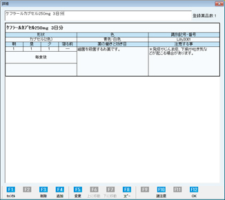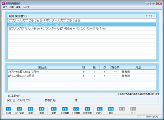 [F6 上に移動][F7 下に移動]:複数服用説明書が登録されている場合、表示する順序を変更できる。