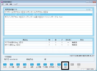 [F10 発行]:服用説明書の印刷をおこなう。